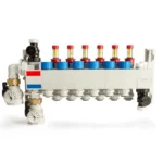 - Separare termică între tur și retur: Distribuitorul dispune de conducte pentru tur și retur izolate termic, ceea ce ajută la menținerea eficienței și la controlul precis al temperaturii.